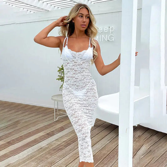 Sleeveless Lace Dress with Lotus Leaf Collar Design
